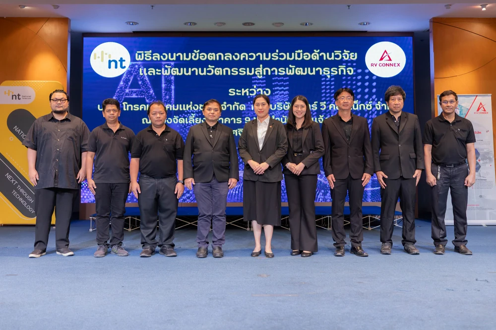 Bangkok, 28 November 2025 — National Telecom Public Company Limited (NT) and R V Connex Co., Ltd. (RV Connex) have signed a Memorandum of Understanding (MoU) to collaborate on research and development of an advanced integrated CCTV security system using Artificial Intelligence (AI). The partnership also includes exploring future business expansion opportunities. Both organizations will work together to identify where these innovations can deliver the greatest operational impact for the country.